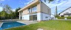 Weitläufiger Wohn-/Essbereich mit offener Küche, bodentiefen Glasfronten und direktem Zugang zur sonnigen Terrasse, dem Pool und dem gepflegten Garten