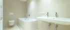 Weiteres hochwertig ausgestattetes Badezimmer mit WC, Badewanne und Platz für ein Doppelwaschbecken