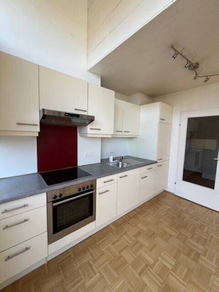 - großer, heller Wohnraum (große Glasfront) mit geräumiger Küche und Abstellkammer